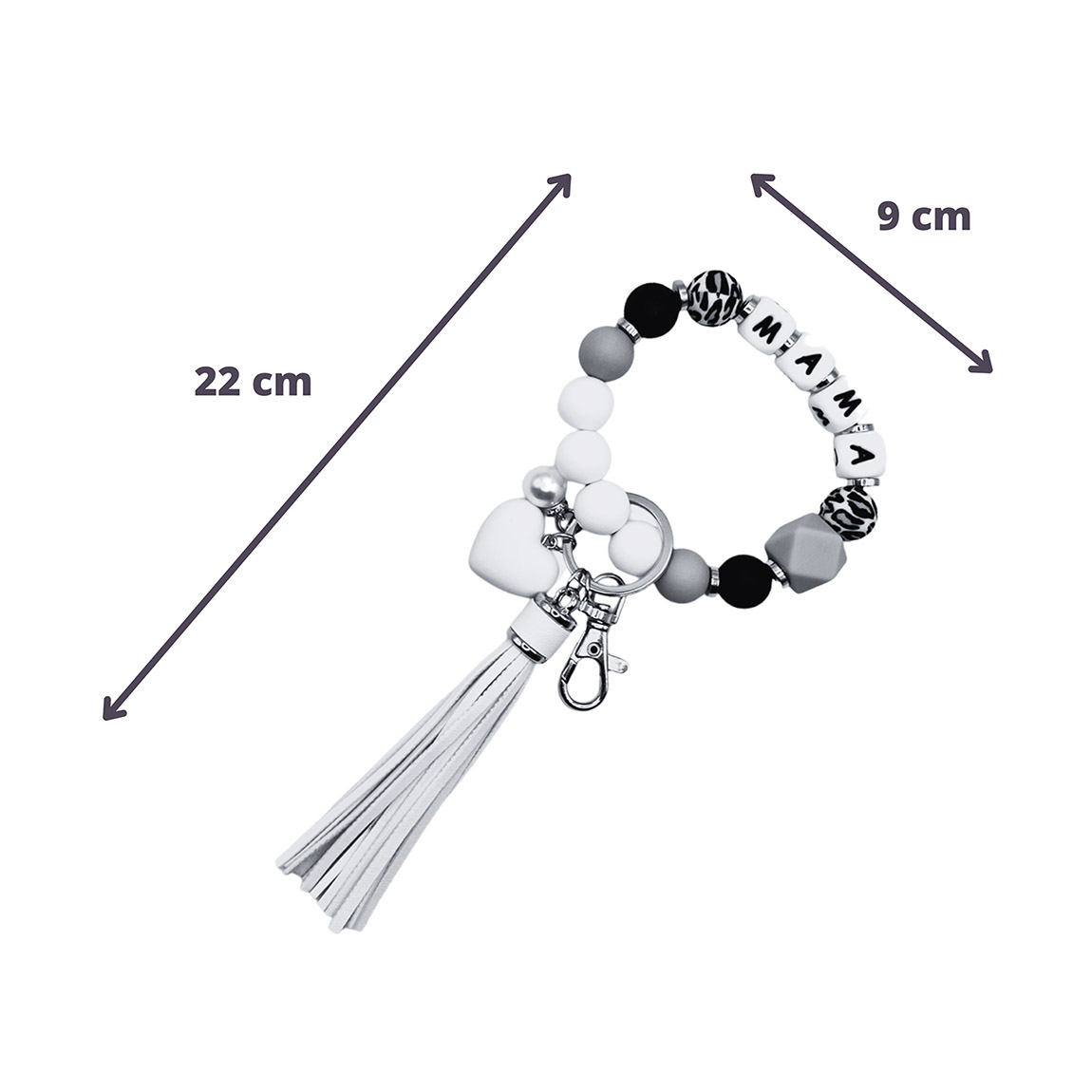 Natuurlijk bengelt er een moederhartje aan deze mooie armbanden, die verkrijgbaar zijn in een witte en een bruine variant. Ze zijn voor alle mama’s, of je dat nu zelf bent om hem cadeau doet aan je eigen (schoon)moeder. De kralen zijn licht en elegant en door het elastieken bandje snap je de armband heel makkelijk om je pols. Het vrolijke kwastje waait met alle winden mee. Praktisch en elegant: je kunt de armbanden gebruiken om er je sleutels of andere praktische spulletjes aan te hangen. Maar je kunt de sleutelring ook afnemen en de armband dragen als beauty accessoire. De armband is ook geschikt om je zelfverdediging sleutelhanger aan vast te maken: veiligheid voorop.